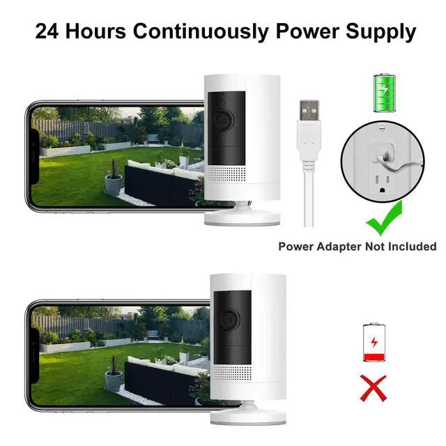 Convenient. This power cable is specially designed for your Spotlight Cam Battery and Stick Up Cam Battery, makes it easier to charge your camera continuously. You no need to change the batteries.