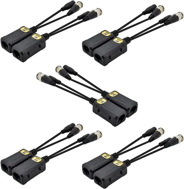 5 Pairs (10pcs) Passive Video & Power Transceive Balun support Up to 8MP HD-AHD/TVI/CVI/CVBS Coaxial Wired CCTV Cameras, it can transmit video/power through a singer UTP Cable