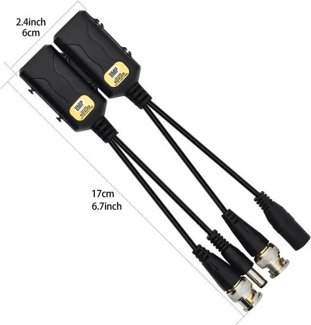 8MP/4K HD Video/Power Balun: This is newest design -8MP/4K HD Passive Video Balun Transmission Cable. Supports Up to 8MP AHD Cameras Over 250 meters, CVI cameras over 200 meters, TVI cameras over 150M (Max). Gold Plated BNC is provided with better transmission quality and long-distance HD transmitter. Support 720P/960P/1080P/3MP/5MP/8MP AHD/TVI/CVI/CVBS CCTV Security Cameras