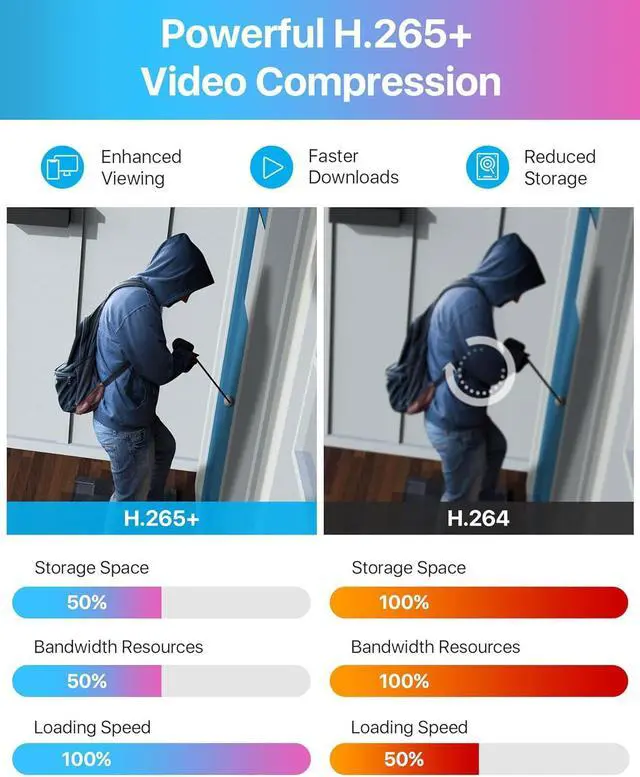 H. 265/H. 265+ 8CH 3K Lite HD-TVI DVRWith the advanced H. 265 technology, which could double the data compression ratio, keep the high quality video even with low bit-rate, it allows you to maximize storage space and enjoy ultra-long recording, perfect for 24/7 surveillance.