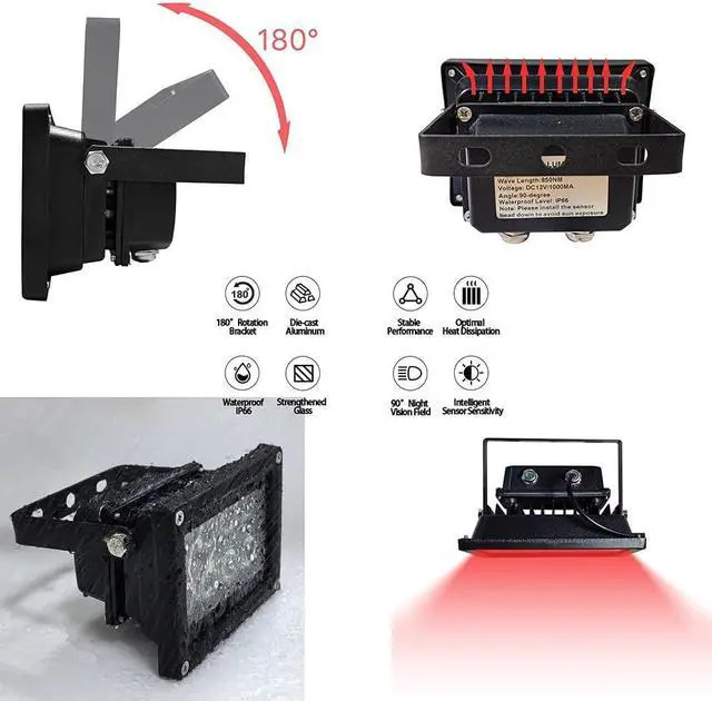 Auto On/Off & Energy Saving Built-in photocell sensor activates at dusk and deactivates at dawn (850nm wavelength), saving energy while providing invisible infrared light for crystal-clear night vision.