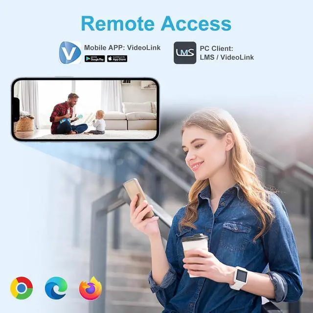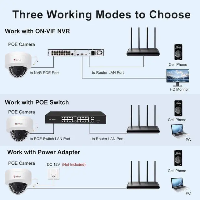 Easy Plug and Play with NVRsWorks with Anpviz PoE NVR; for the most 5MP PoE NVRs it can be plug and play; works with Thrid Party Software, ISpy, Milestone, etc; also has DHCP allows you to add cameras to other brands of NVRs; works with NAS. Easy view on web browser like Edge, Firefox, Google Chrome.
