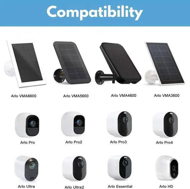 ONLY compatible with Arlo Solar Panel, Arlo Pro/Arlo Pro 2/Arlo Pro 3/Arlo Pro 4/Arlo Ulra/Arlo Ulra 2