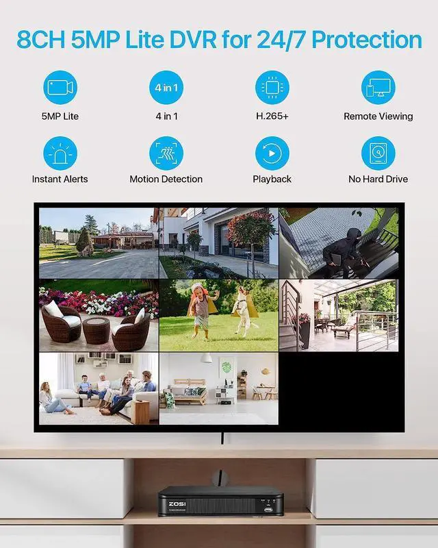 (1). [ Advanced H. 265+ High Efficiency Video Compression ] __ ZOSI self-developed H. 265+ video coding technology extract features that focus on characteristics of the surveillance scenes for larger storage space and better image quality. H. 265+ can further improve compression ratio on the basis of H. 265 standard and save about 80% storage compared with H. 264, and thus effectively saving storage resources and provides an excellent and smooth viewing experience.