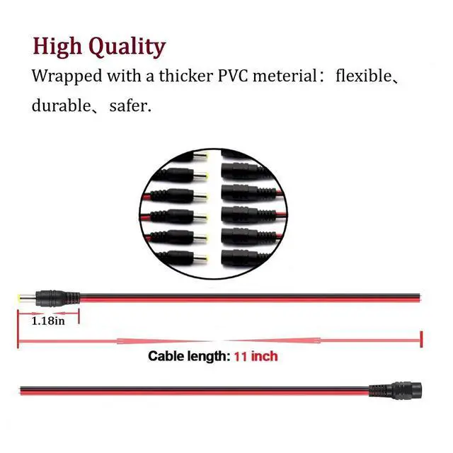 Standard sizes30cm ( 11.8 inch) DC barrel connector pigtail bring safe and fast transport.