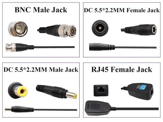 Connectors 1: RJ45 to BNC male/DC male jack, Connectors