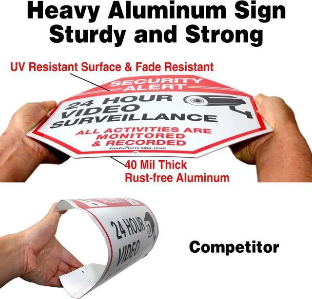 Visible warning: Our security signs are especially designed to catch people' s eyes, with the 12" x 12" octagon rust free 40mil thick aluminum plate, any potential criminals just can' t miss it