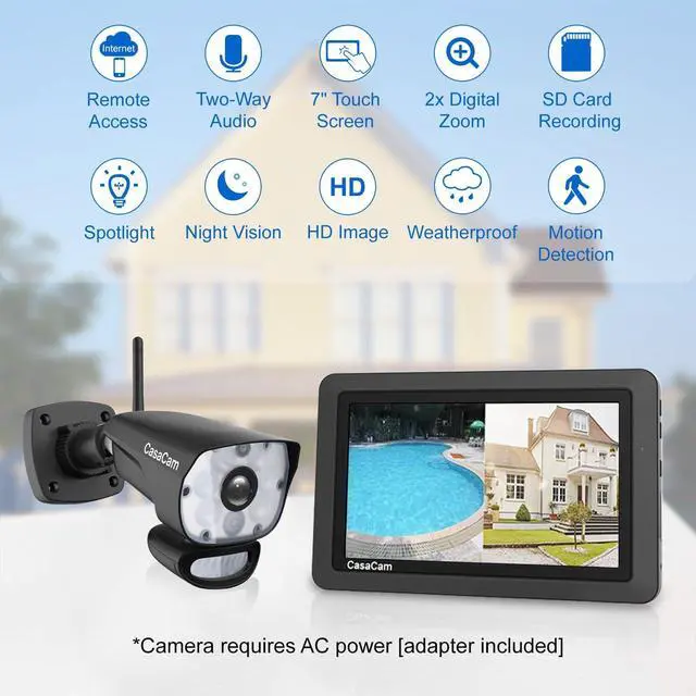 True DIY DVR system with 7 touchscreeen monitor. A Security camera and Security Spotlight Light combo. Simply connect the camera to a power supply and experience the ease of use and peace of mind youve come to expect from CasaCam!