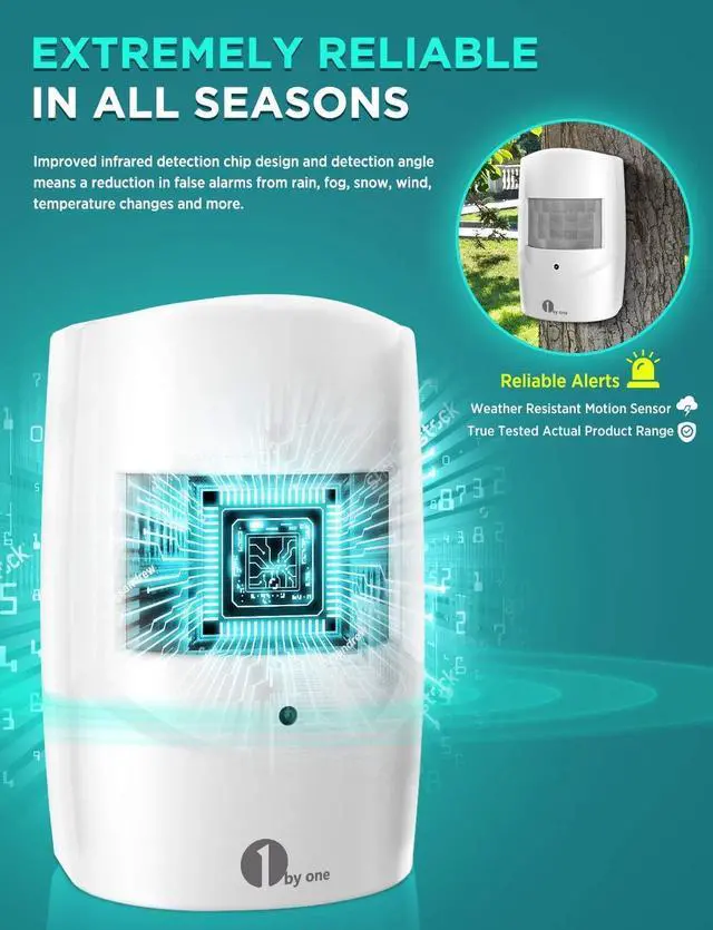 Wireless Motion Sensor Alarm: A Motion detector is essential in a home security system; It can detect movement in the surrounding areas: driveway, front porch, gate, home, shed, office, walkway, swimming pool, etc, and trigger alerts to the linked receiver; It provides an added level of security and safety to your property and loved ones