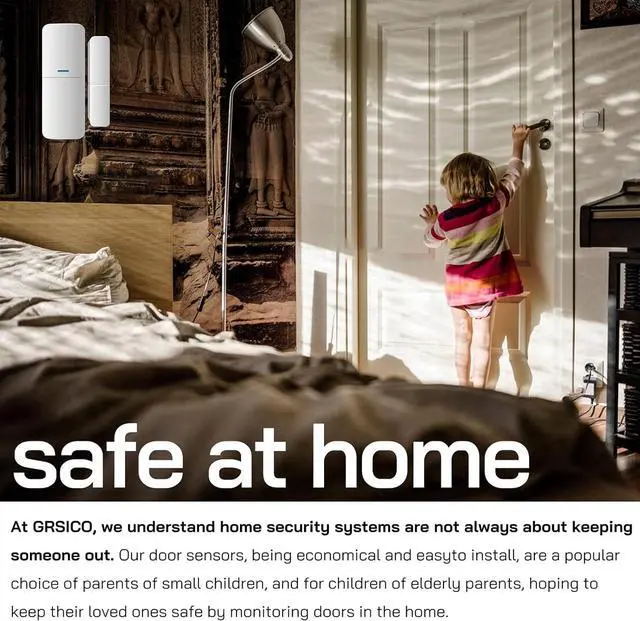 Instant APP Alerts: GRSICO door alarm system for home pushs an alert to you if someone is opening the door/window in your absence, your smart phone will receive real-time notifications. It is always worrying for people when they leave the house, but this alarm system puts your mind at ease when you are traveling.