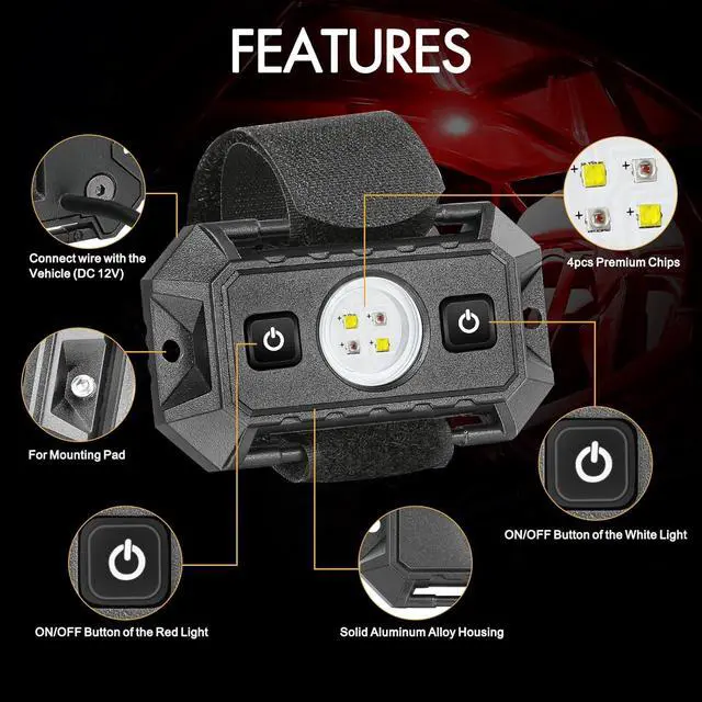 REMARKABLY ILLUMINATION: High Brightness, 2 light modes (white & red), built-in 4pcs premium chip for quality performance, durable compact aluminum housing for excellent heat dissipation and waterproof, working