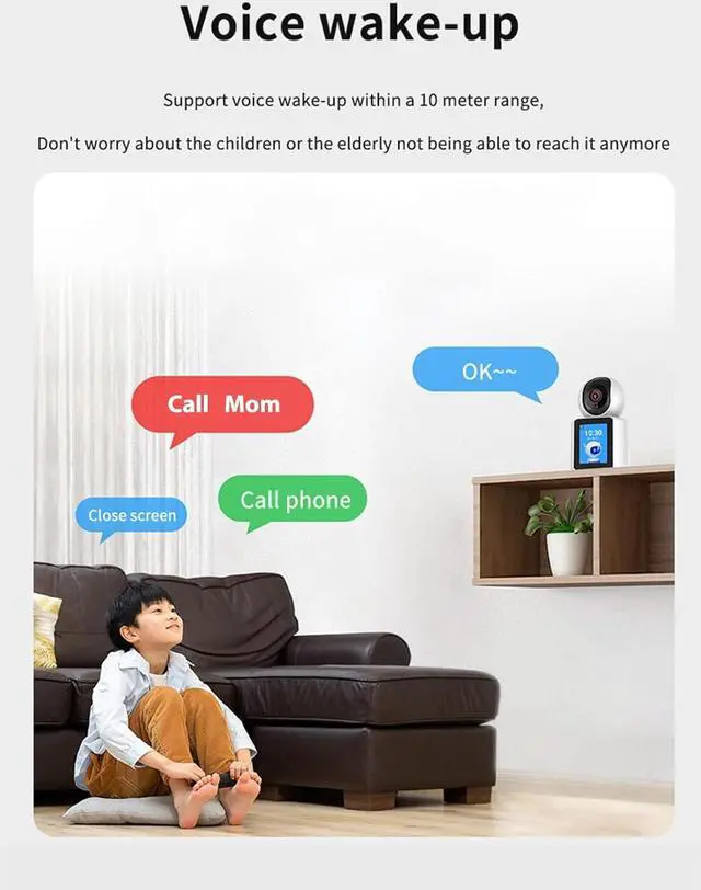 HD Screen: Video calling camera with voice assistant, you can wake up the two way video calling camera by voice, without pressing a button, very easy and convenience to use
