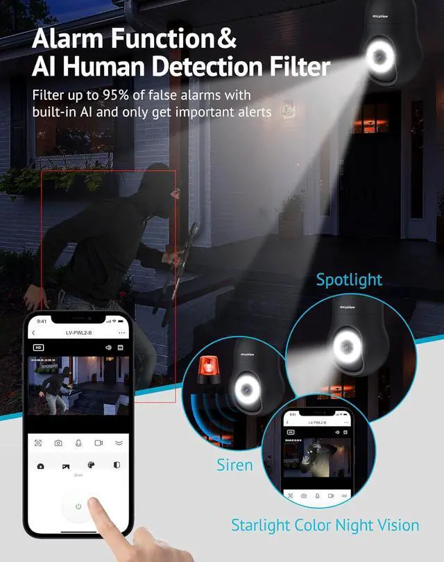 Two-way audio & alarm deter intruders