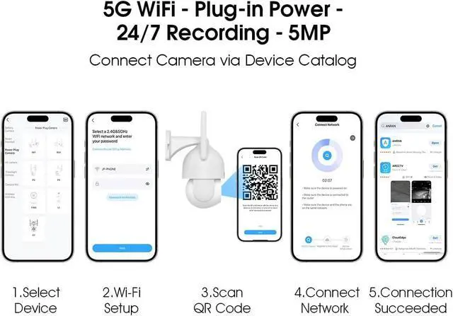 [Easy Installation & Dual-Band 2.4 /5GHz WiFi] Install the ANRAN wireless outdoor camera quickly and easily with only a single power cord. It supports both 2.4GH z and 5GHz WiFi bands for a stable and fast connection (NOT 4G/5G cellular data, NO SIM card required).