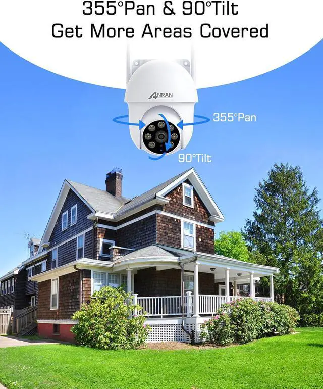 [360° Pan-Tilt & 3K/5MP High-Resolution Image] The ANRAN PTZ Outdoor Camera offers a full 355° horizontal and 90° vertical rotation for complete coverage. Easily control the camera via the ANRAN app, providing a full view of your surroundings. Equipped with 4 IR lights and 4 white lights, it delivers crystal-clear 3K/5MP images 2.5 times sharper than standard 1080p. Capture sharp, detailed video with a 130° wide-angle lens and 4X digital zoom (NOT optical zoom).
