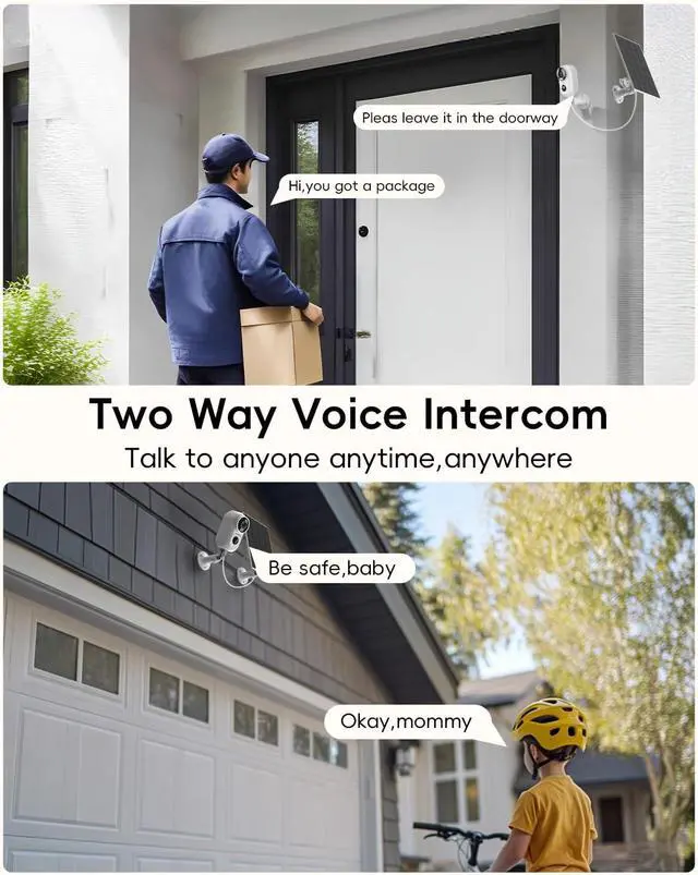 Talk & Instant Siren: This battery-powered outdoor security camera is completely wireless, eliminating the need for cables and frequent charging. It offers long standby time with continuous recording capabilities. The built-in antenna ensures a stable 2.4G