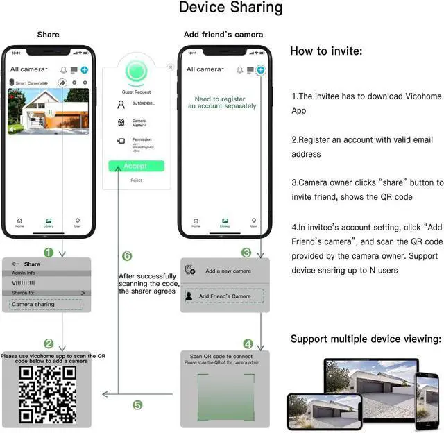 SD/Cloud Storage & Multiple-user SharingAll motion detection videos will be store on a local SD Card (support max 128G card, not included) or Cloud Storage. You can share the magnetic mount outdoor security camera with others, and these users can simultaneously view the outdoor wireless camera on their phone. Support device sharing up to 8 users. (New Vicohome account users are provided with a 30-day free trial)