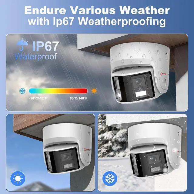Clear Night Vision: With 100ft night vision, the panoramic outdoor security camera can capture clear and detailed images in low light conditions. Experience crystal clear images even in low-light conditions with our advanced security camera featuring Starlight sensor technology.