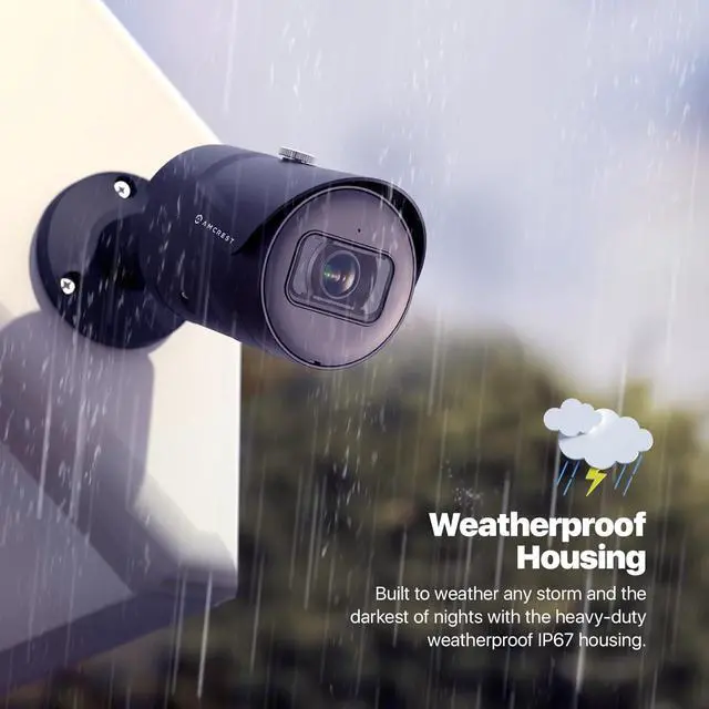 DAY OR NIGHT, RAIN OR SHINE This outdoor POE IP camera features a heavy-duty metal weatherproof IP67 housing, as well as a built-in IR, LED and a low lux image sensor to achieve amazing low-light capability and night-vision up to 98.4 feet. Dual H. 265/H. 264 compression allows for maximum encryption with the latest technology as well as backward compatibility with legacy platforms. This camera is compatible with Amcrest NVR' s and has limited compatibility with third party NVR' s.