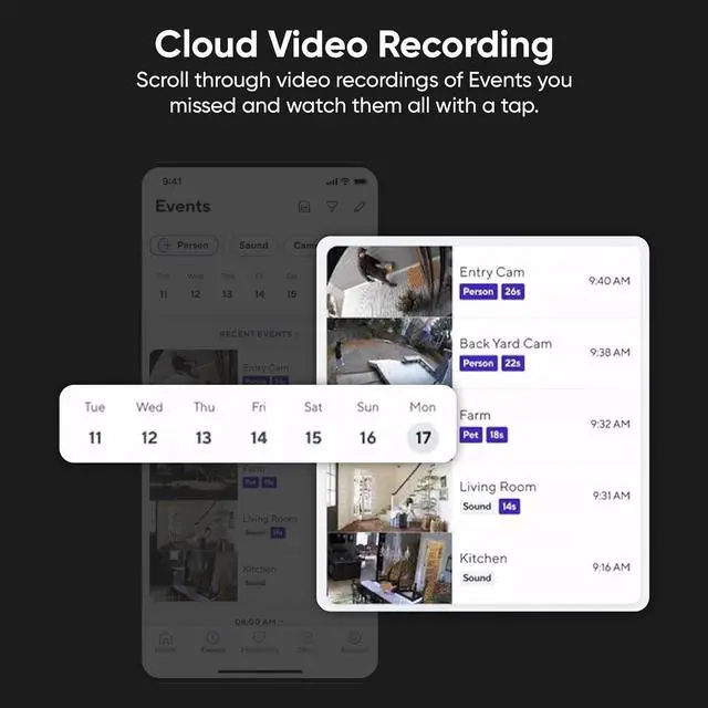 24/7 Cloud Recording: Unlock the peace of mind with 14-day video cloud storage, where your moments are securely saved and always within reach in the cloud. Perfect for those who value safety and convenience.