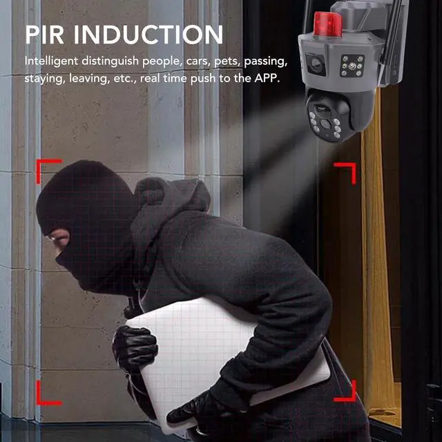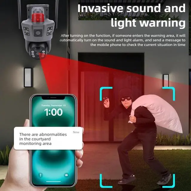 [Advanced Ai Human Detection] Equipped with an ai human detection system, this camera triggers an alarm immediately upon detecting any unusual activity, sending alerts to your mobile app. it also activates a siren and bright light to effectively deter intruders.