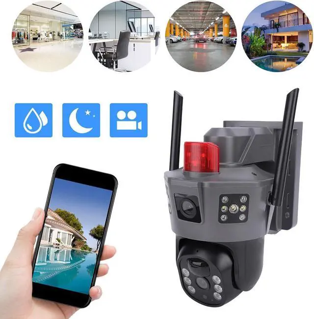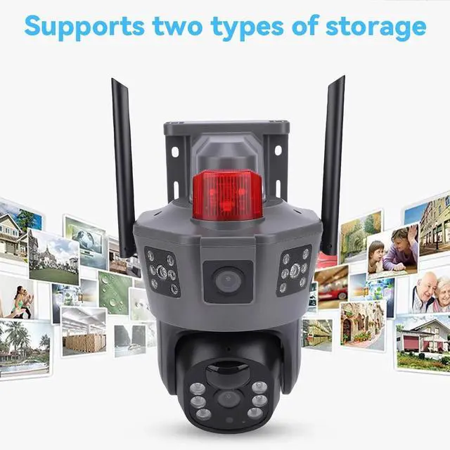 [Powerful Ptz Dual Lens] Outdoor ptz dual lens camera with 360-degree rotation captures key areas and supports remote rotation in the app for versatile viewing angles.