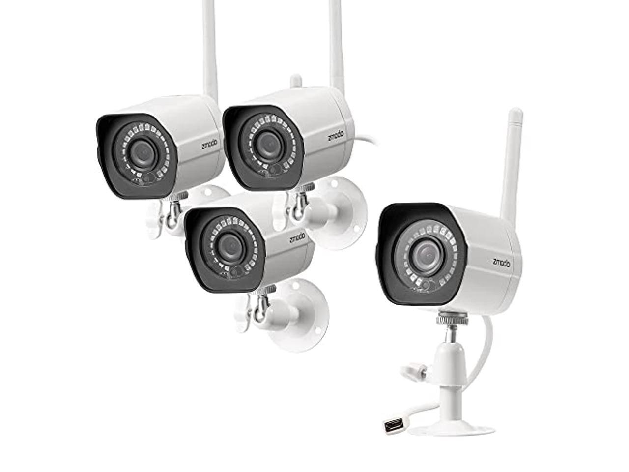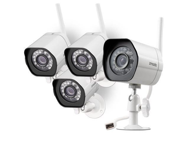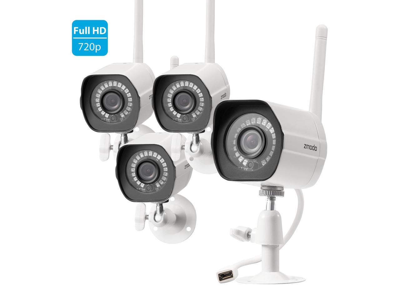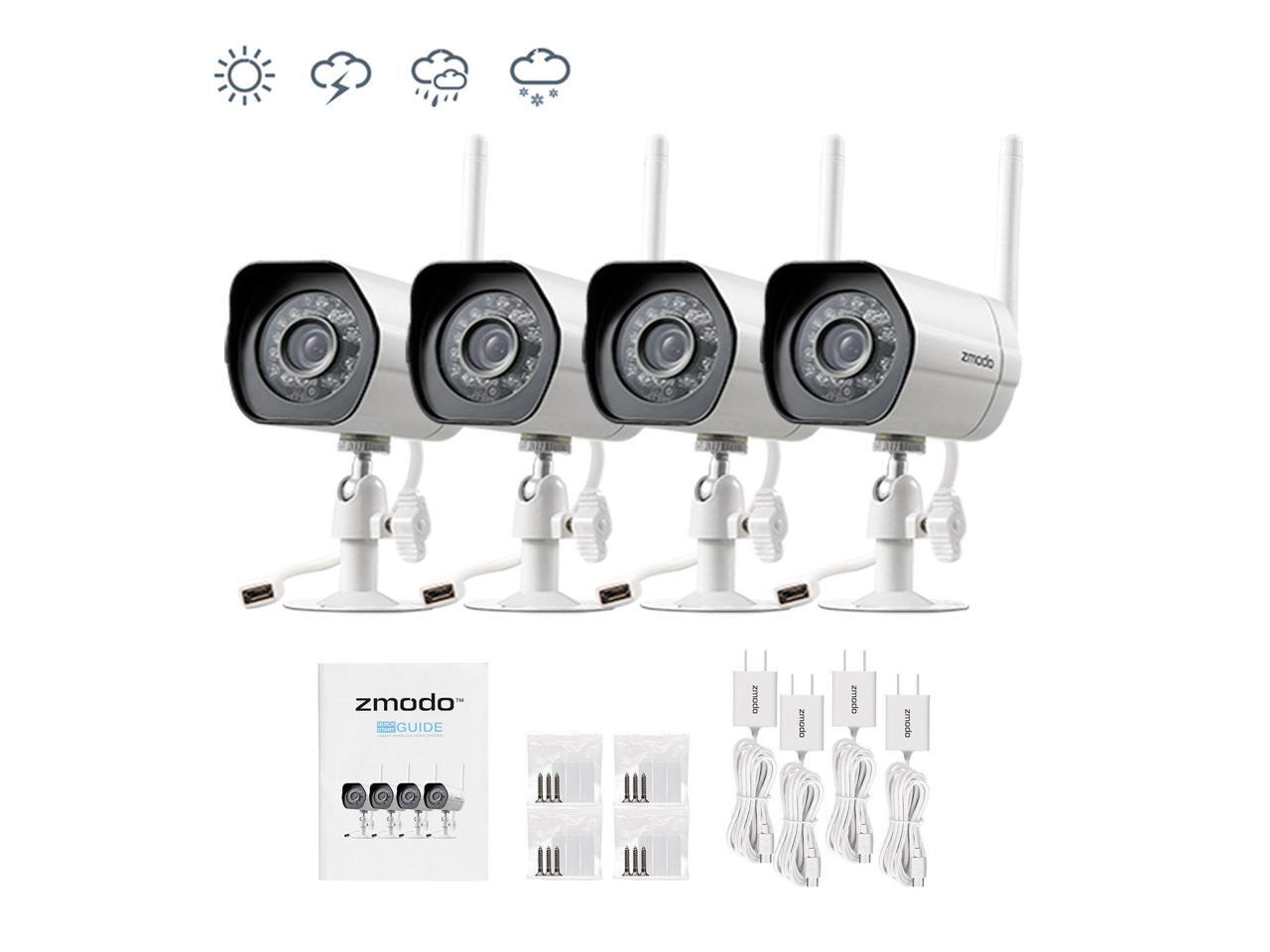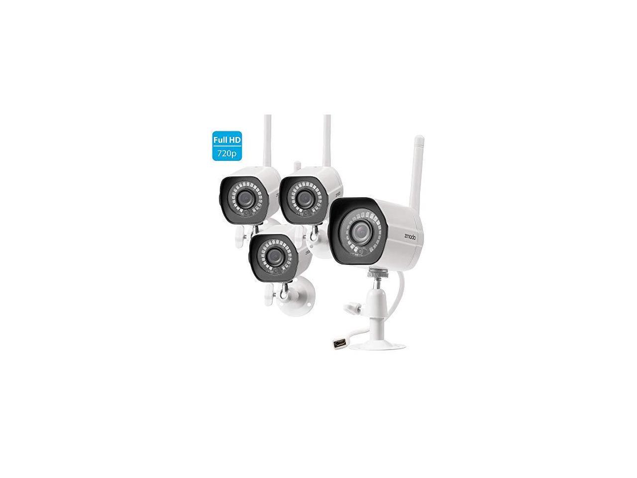 zmodo wireless security camera system (4 pack) smart hd outdoor wifi ip cameras with night vision - works with alexa
