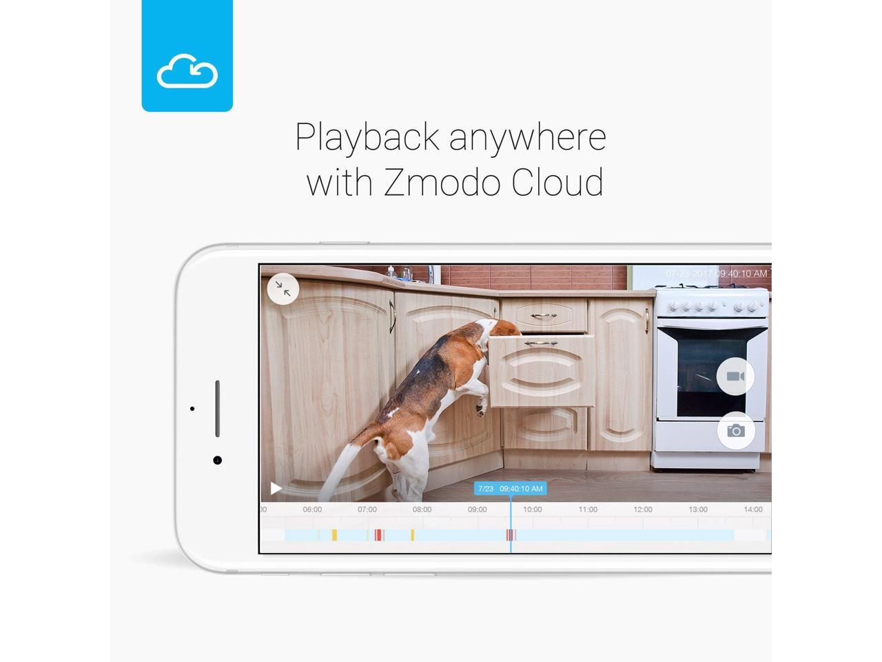 - Always Stay Connected - Seamlessly stream video remotely via the mobile Zmodo app for iOS and Android or via Internet browser on user.zmodo.com anywhere anytime. Receive intelligent motion alerts on your mobile phone when motions detected. Playback motion videos to check for the missed moments. Improved motion detection enables you to set a motion detection zone on the area you care about .