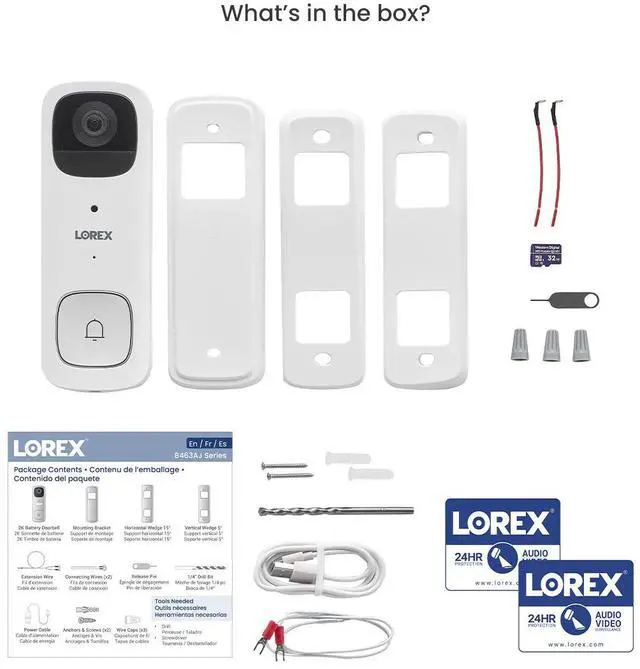The two-way audio communication allows you to have a conversation with your visitors, even if you're not at home. The doorbell camera is easy to install and comes with a mounting kit and screws and can be powered either by the rechargeable battery or using doorbell wiring that keep the battery continuously powered. The doorbell camera is compatible with Lorex's mobile app, allowing you to view live footage and receive notifications on your phone. The Lorex 2K battery video doorbell is the perfect way to enhance your home security and improve your communication with visitors.