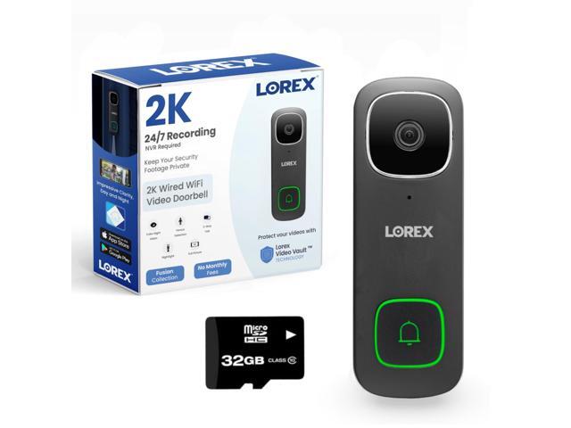 Lorex 2K Wired WiFi Smart Video Doorbell Camera w/ No Subscription Fee - Smart Security Lighting, Night Vision, Motion Detection, Requires Existing Wiring (Black)