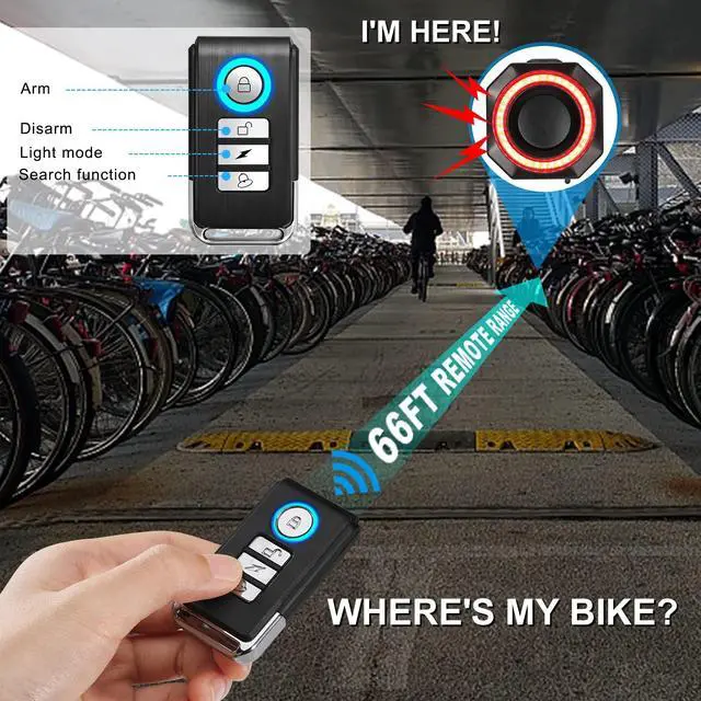 WSDCAM Bike Tail Light Alarm with Remote Control, Smart Brake Light & Auto On/Off Function