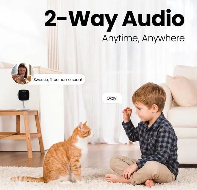 Monitor the inside of your home day and night with our 1080P HD indoor plug-in smart security camera with motion detection and two-way audio.