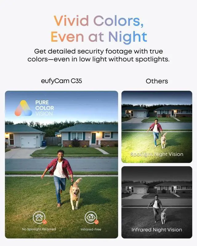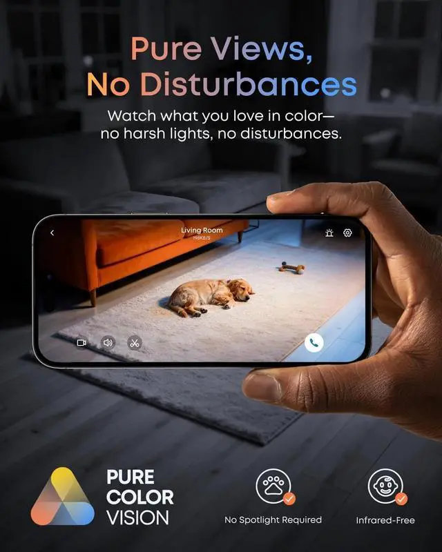 True Colors, Even at Night: Experience vivid, lifelike images even in low light. PureColor Vision delivers clear nighttime monitoring without spotlights or infrared.