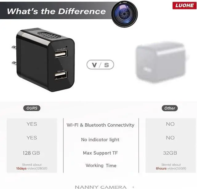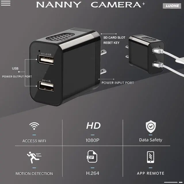 Nanny Camera Charger: It is a nanny camera with an lens. Even if one suspects its presence, locating it remains a challenge. Ideal for security in homes, offices, hotels, or stores, this nanny camera not only offers convenient charging but also captures the vital information you seek.