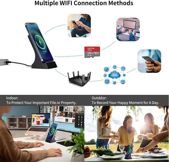 LIZVIE Spy Cameras with Wireless Charger, 1080P HD Mini Phone Charger Nanny Camera Cam Surveillance for Home Office