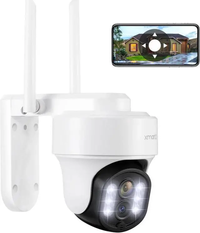 xmartO DY3034 is an outdoor WiFi security camera with pan tilt zoom, 2K super HD resolution, auto tracking pan tilt zoom control, enhanced 2-way audio and auto flood lights. It works standalone with xmartO WallPixel Apps, Alexa and xmartO NVRs. The camera watches front door & back yards very well.