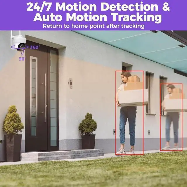 xmartO DY3034 is an outdoor WiFi security camera with pan tilt zoom, 2K super HD resolution, auto tracking pan tilt zoom control, enhanced 2-way audio and auto flood lights. It works standalone with xmartO WallPixel Apps, Alexa and xmartO NVRs. The camera watches front door & back yards very well.