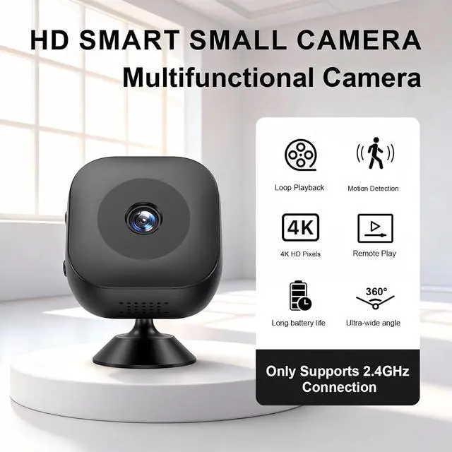 Fast Setup & WiFi Connectivity: Power on the mini camera for instant use. This compact camera works with 2.4GHz WiFi (no 5GHz support) and has one click Bluetooth setup, so you can connect it to the app in minutes. First time users can set it up without any trouble, and get the camera running right away for instant home security.