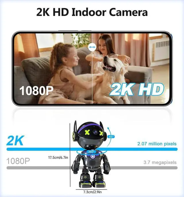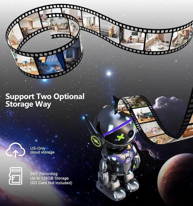This Wireless Pan-Tilt Camera is a smart home security device featuring a minimalist black design with a DIY little black figure style, combining cuteness with practicality. Equipped with infrared night vision, it delivers clear monitoring around the clock. The built-in 3-megapixel HD lens captures sharp, detailed footage.