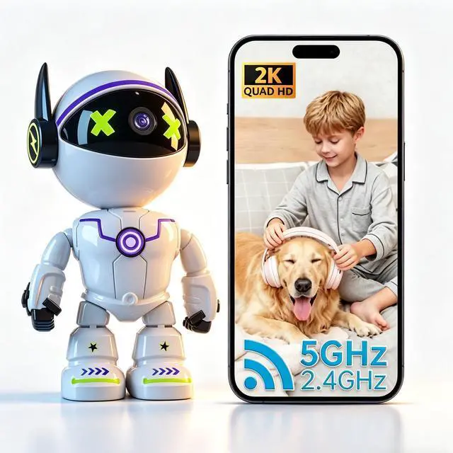 With dual-band Wi-Fi (2.4G/5G) and Bluetooth connectivity, it ensures a stable network and seamless compatibility with various smart devices. The wireless design allows flexible installationplace it on a desk or mount it on a wall without the hassle of cables. It comes with a 5V/1A power adapter for stable and long-lasting operation.