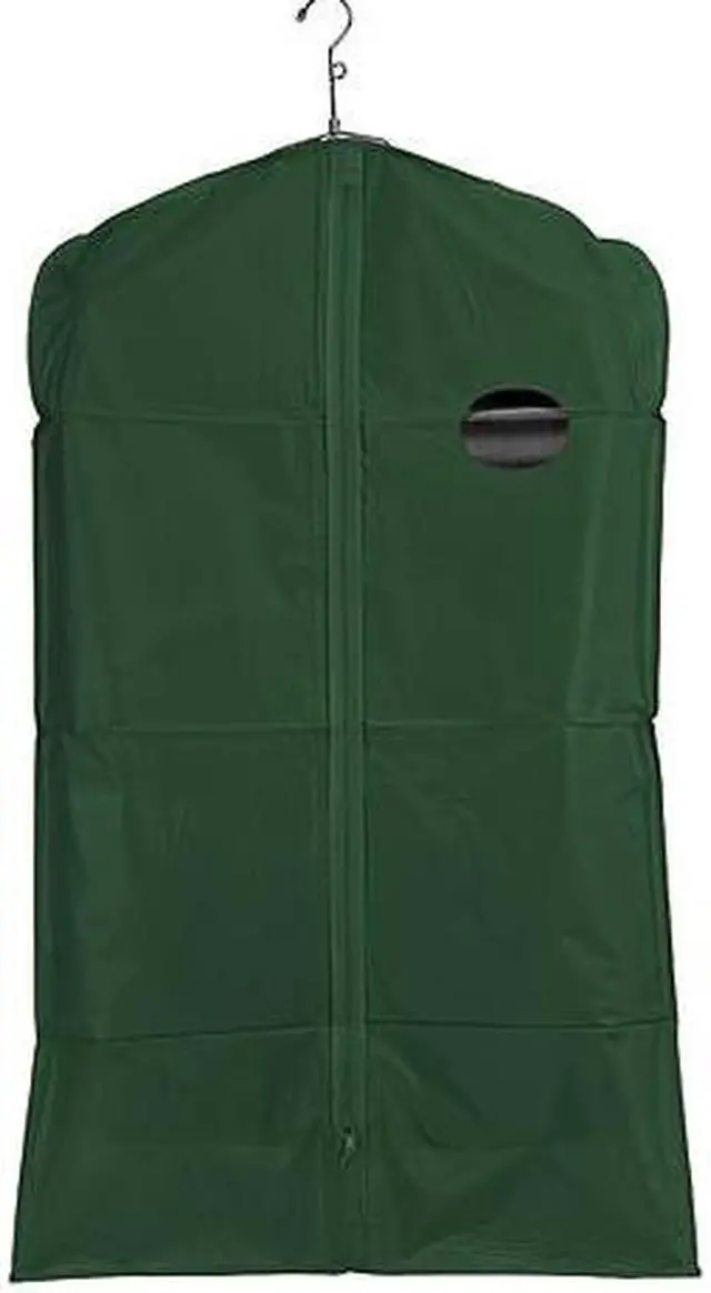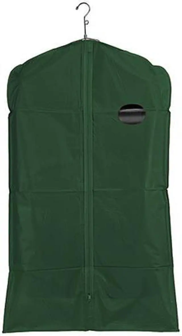 Attractive and sturdy re-usable garment cover can be customer printed in a variety of colors in a 6" x 6" area below the oval window. Printed logo acts as an advertisement or promotion. Keeps clothing wrinkle free and has reinforced hanger opening with center zipper.