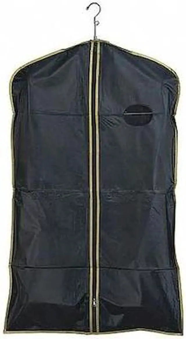 Attractive and sturdy re-usable garment cover can be custom printed in a variety of colors in a 6" x 6" area below the oval window. Printed logo acts as an advertisement or promotion. Keeps clothing wrinkle free and has reinforced hanger opening with center zipper.
