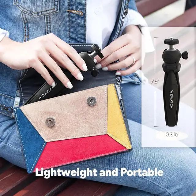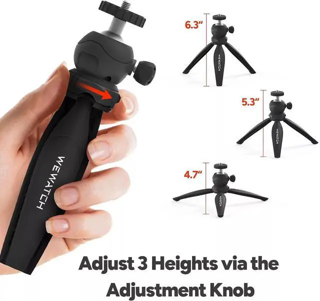 Adjustable HeightThe WEWATCH PS102 desktop tripod has 3 adjustable heights: 4.7 inches, 5.3 inches and 6.3 inches to meet your different projection needs. Rotate the adjustment knob to adjust the desired height for different desktops and devices.