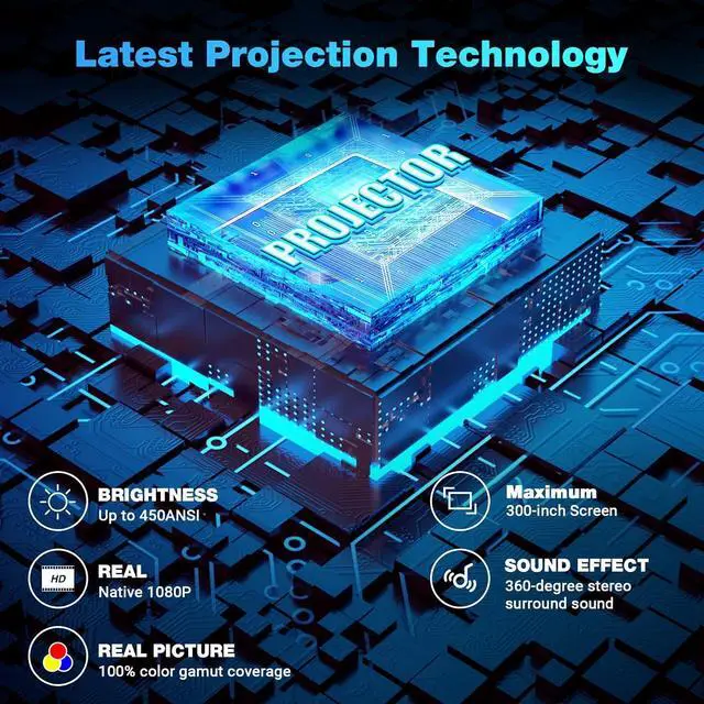 ***Native 1080P & 4K Support*** Our HD 1080P projector has taken the 2023 latest Projection Technology and adopted the highest native resolution 1920*1080 pixels, contrast ratio of 10000:1 and 350 ANSI high brightness. By combining the innovative high-refraction 5 layers LCD lens, This projector offers the sharpest and detailed Full HD and vivid images to ensure the best video experience to our customers.