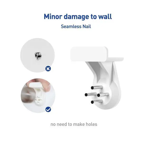 Minor damage to wall; Two installation methods are available, seamless nail(Minor damage to the wall, no need to make holes) and drilling