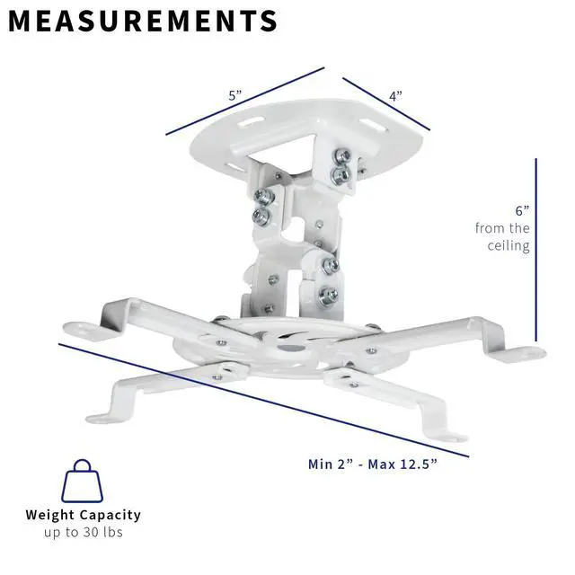 Trust our mount to keep your projector safe and secure. Solid construction made entirely of high grade steel supports projectors up to 30 lbs. We provide the necessary mounting hardware.