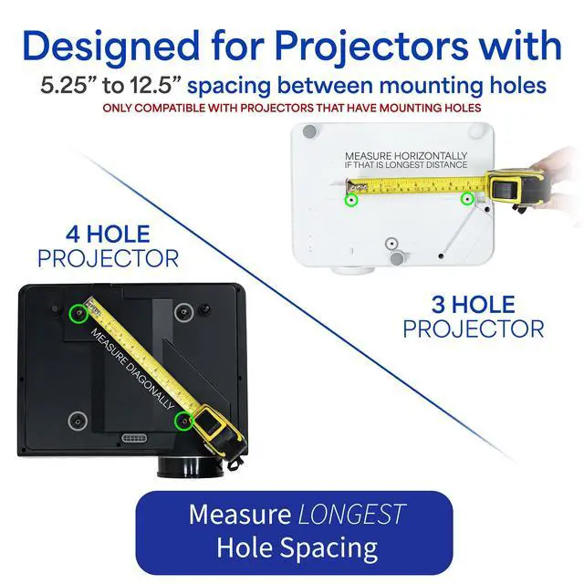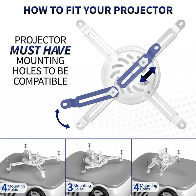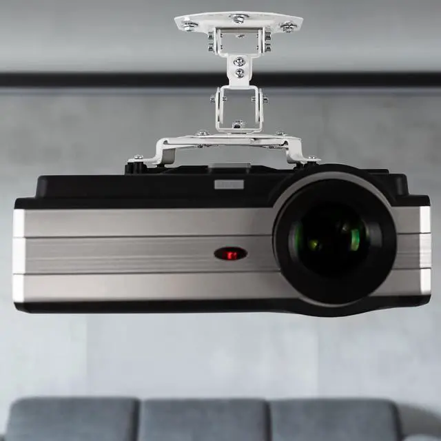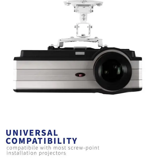 Fully adjustable projector mount featuring 15-degree tilt, 15-degree swivel, and 360-degree rotation, hitting all the right viewing angles. The bolts can be tightened and loosened with the provided hex tool for flexible movement or securing in position.