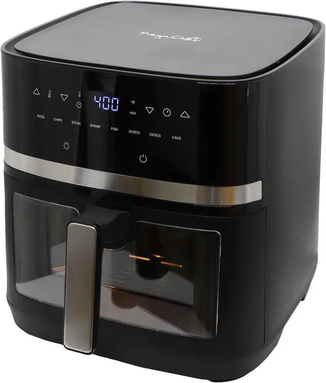 MegaChef 8 Liter Digital Electric Air Fryer with Transparent Window in Black