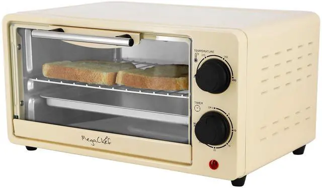 The MegaChef 9.5 Quart Electric Countertop Toaster Oven in Cream offers a sleek and stylish addition to any kitchen, with its compact design and versatile functionality. Perfect for small kitchens or anyone looking to save counter space, this toaster oven allows you to bake or toast your favorite dishes with ease. Its 9.5 Quart capacity accommodates a variety of foods, while the powerful electric heating ensures quick, even cooking every time. The classic cream color adds a touch of elegance to your countertop, making it both a practical and attractive kitchen appliance.