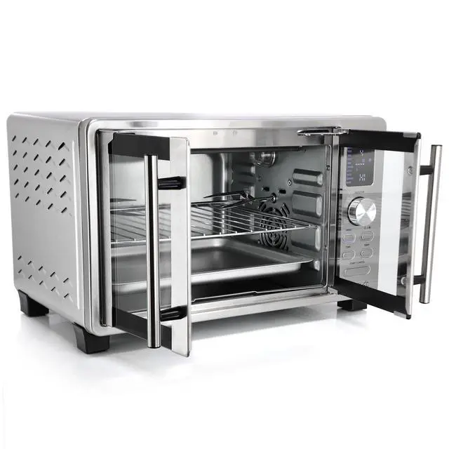 The elegant French door design not only enhances the oven's visual appeal but also provides easy access to your food while minimizing heat loss. With multiple functions including broil, bake, and toast, along with convection cooking and a rotisserie function, this oven adapts effortlessly to your culinary needs. The intuitive digital control panel simplifies operation, while the indicator light keeps you informed of the oven's status.